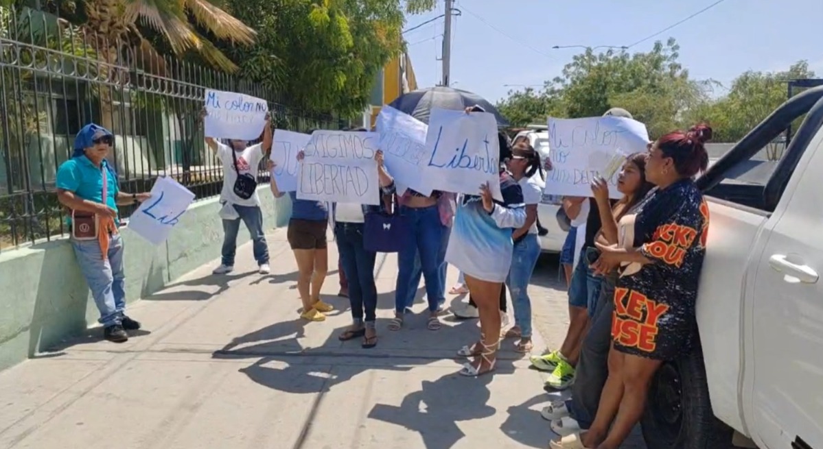 Familiares y la defensa legal de un ciudadano detenido por su presunta vinculacion con la muerte del abogado Percy Ipanaqué realizaron una protesta frente al complejo policial Roberto Morales Rojas para exigir su inmediata libertad.