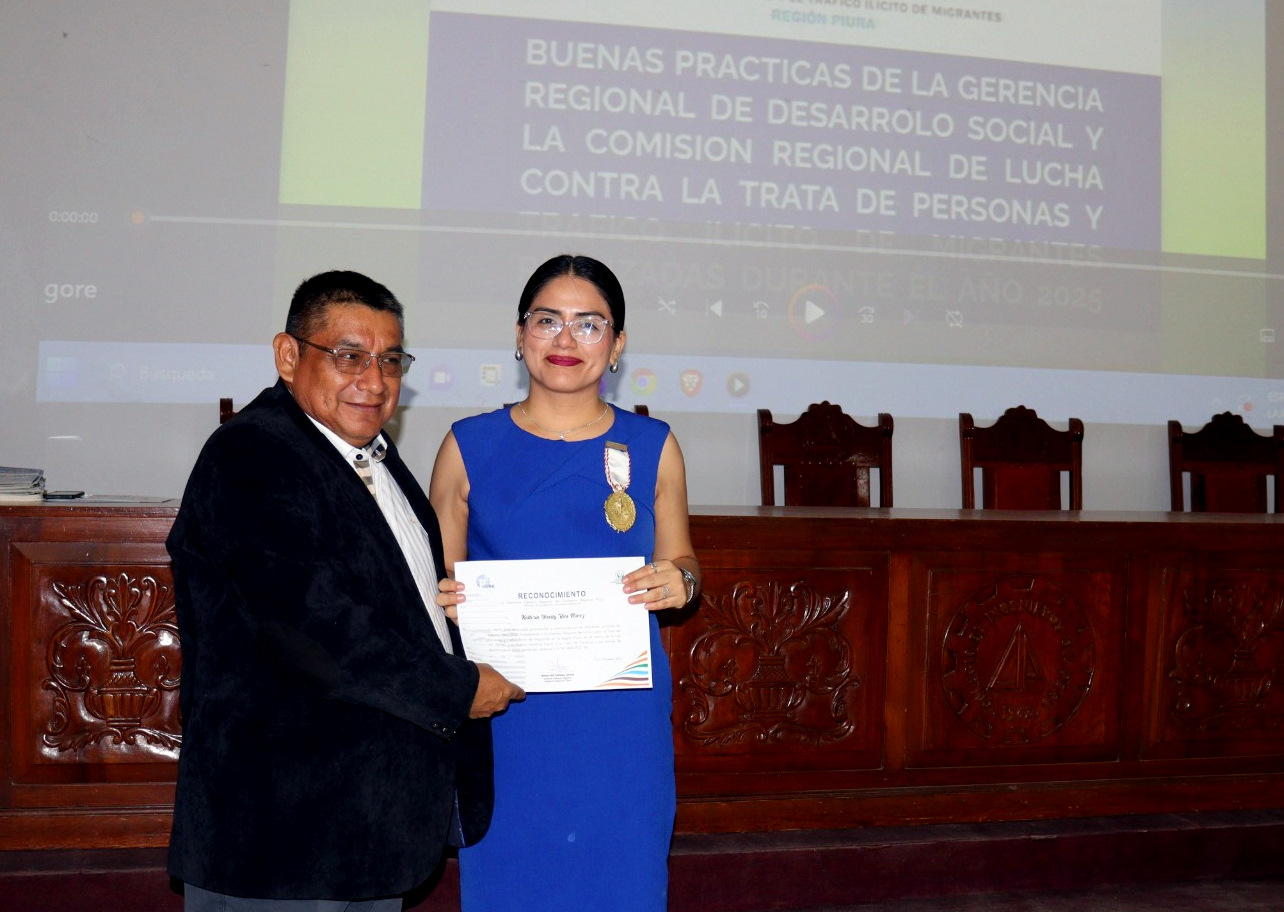 La Comisión Regional de Lucha contra la Trata de Personas y el Tráfico Ilícito de Migrantes de la región Piura otorgó un Diploma de Reconocimiento a la Presidenta de la Junta de Fiscales Superiores del Distrito Fiscal de Piura, Faviola Susana Campos Hidalgo, en mérito a su destacada participación y firme compromiso en las diversas acciones desarrolladas durante el año 2025, que contribuyeron al fortalecimiento del trabajo articulado de dicha Comisión Regional.