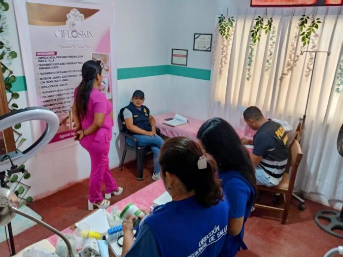 La fiscal Provincial Berena Ballesteros Vigil de la Fiscalía Provincial Especializada de Prevención del Delito de Piura realizó un operativo focalizado en un centro estético, ubicado en el asentamiento Santa Rosa, distrito Veintiséis de Octubre, en Piura, con la finalidad de prevenir riesgos contra la salud pública y verificar el cumplimiento de la normativa vigente.