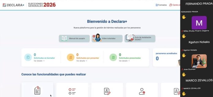 El Jurado Nacional de Elecciones (JNE) llevó a cabo hoy la última jornada de capacitación de refuerzo dirigida a personeros legales de las organizaciones políticas sobre el uso del Sistema de Gestión de Trámites para Personeros Declara+, en el marco de las Elecciones Generales 2026.