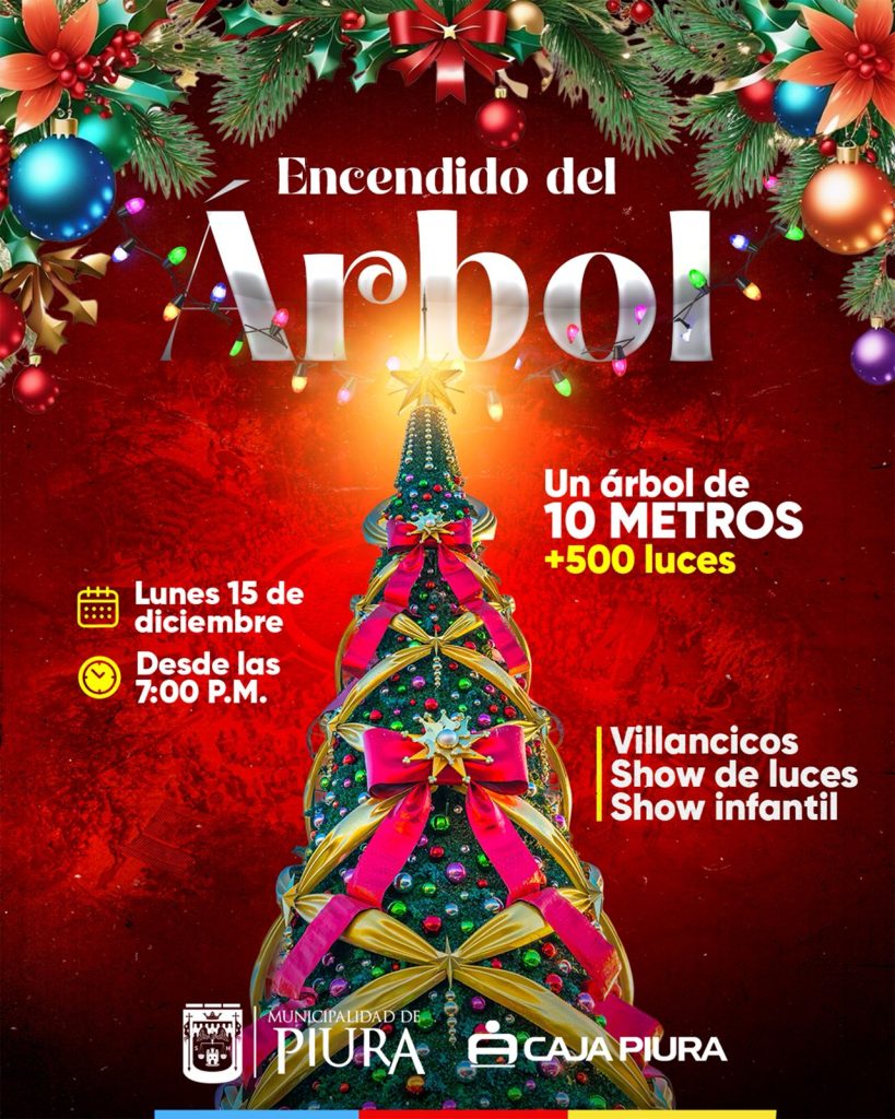 Las familias piuranas están invitadas a ser parte de una noche de luz, emoción y comunidad este lunes 15 de diciembre con el tradicional encendido del árbol navideño en el Parque Néstor Martos. El evento, fruto de una alianza estratégica entre la Municipalidad Provincial de Piura (MPP) y Caja Piura, reafirma el compromiso de ambas instituciones con la integración familiar y el espíritu navideño.
