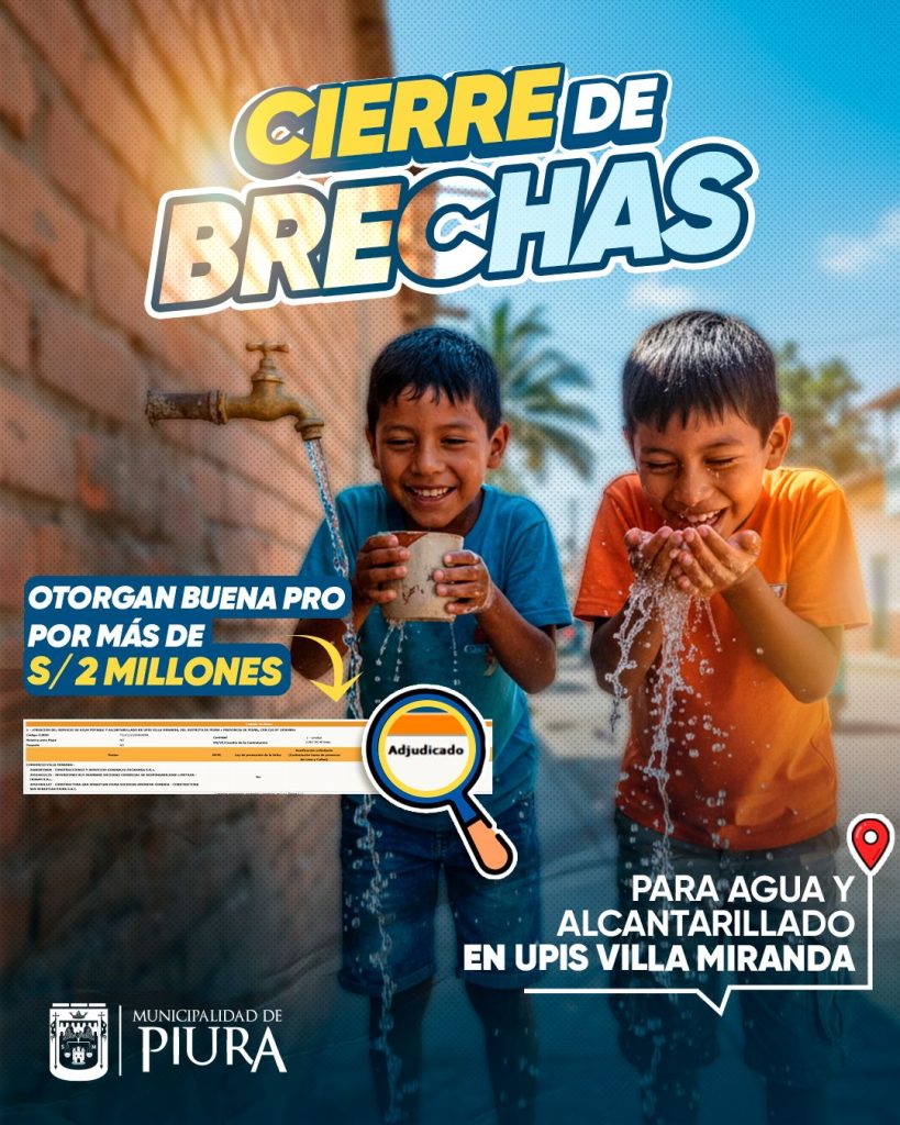 Después de años de espera, el acceso al agua potable y alcantarillado será una realidad para cientos de familias de UPIS Villa Miranda. La Municipalidad Provincial de Piura (MPP) otorgó la buena pro para la creación de estos servicios básicos por un monto de S/ 2,063,740.46, marcando un hito en la mejora de la calidad de vida de este sector.