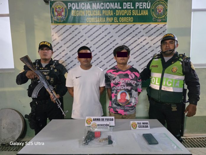 Agentes de la comisaría PNP El Obrero, perteneciente a la Región Policial Piura, lograron desarticular a la presunta banda delictiva “Los Win”, tras intervenir a dos de sus integrantes implicados en el presunto delito de peligro común, en la modalidad de fabricación, comercialización, uso o porte de arma de fuego. El hecho ocurrió la noche de ayer en Sullana.