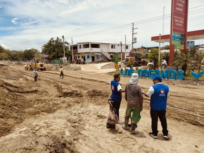 En el distrito de Los Órganos, representantes de la Defensoría se trasladaron hasta el asentamiento humano José Peña Quiroga, donde verificaron la situación de familias cuyas viviendas quedaron sepultadas bajo el lodo tras la activación de una quebrada cercana.