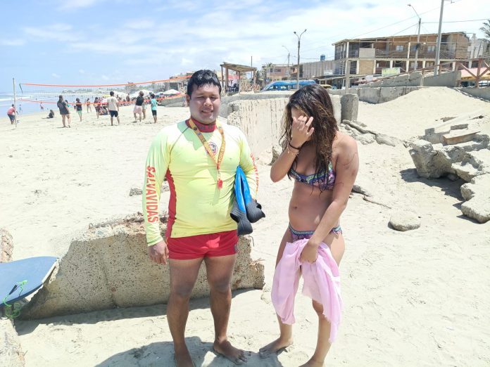 Efectivos de la Unidad de Salvataje de la Policía Nacional del Perú en Piura realizaron un oportuno y eficaz rescate de dos personas que fueron arrastradas por una corriente de retorno, conocida como chila, en el balneario de Máncora.
