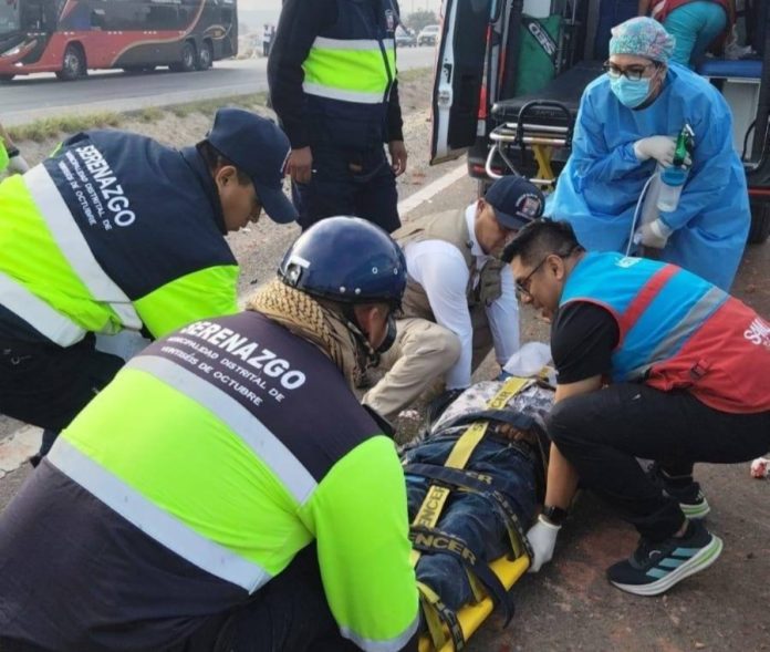 Ante la emergencia, personal de Serenazgo de la Municipalidad Distrital Veintiséis de Octubre acudió de inmediato para brindar los primeros auxilios, asegurar la zona y controlar el tránsito. Su rápida intervención fue clave para la atención inicial del herido.