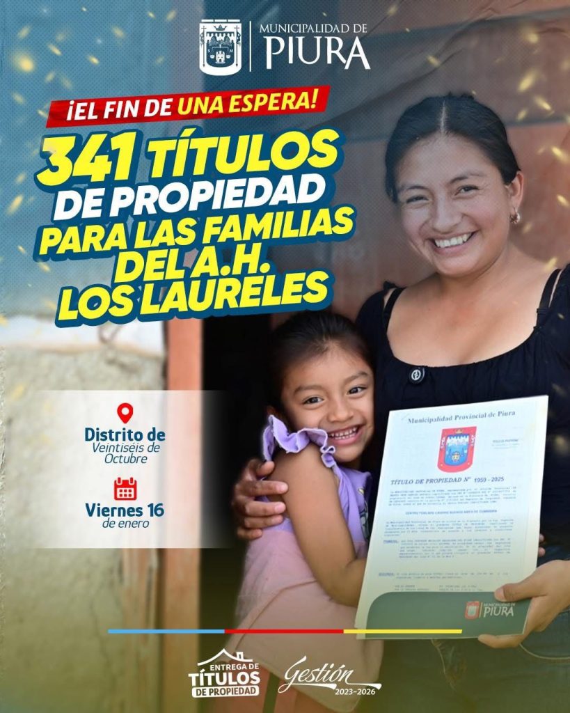 Este 16 de enero, la Municipalidad Provincial de Piura entregará 341 títulos de propiedad, un documento que garantiza seguridad jurídica, herencia para sus hijos y acceso real a nuevas oportunidades de desarrollo. Para muchos vecinos, se trata del cierre definitivo de una larga espera marcada por trámites inconclusos y promesas incumplidas.